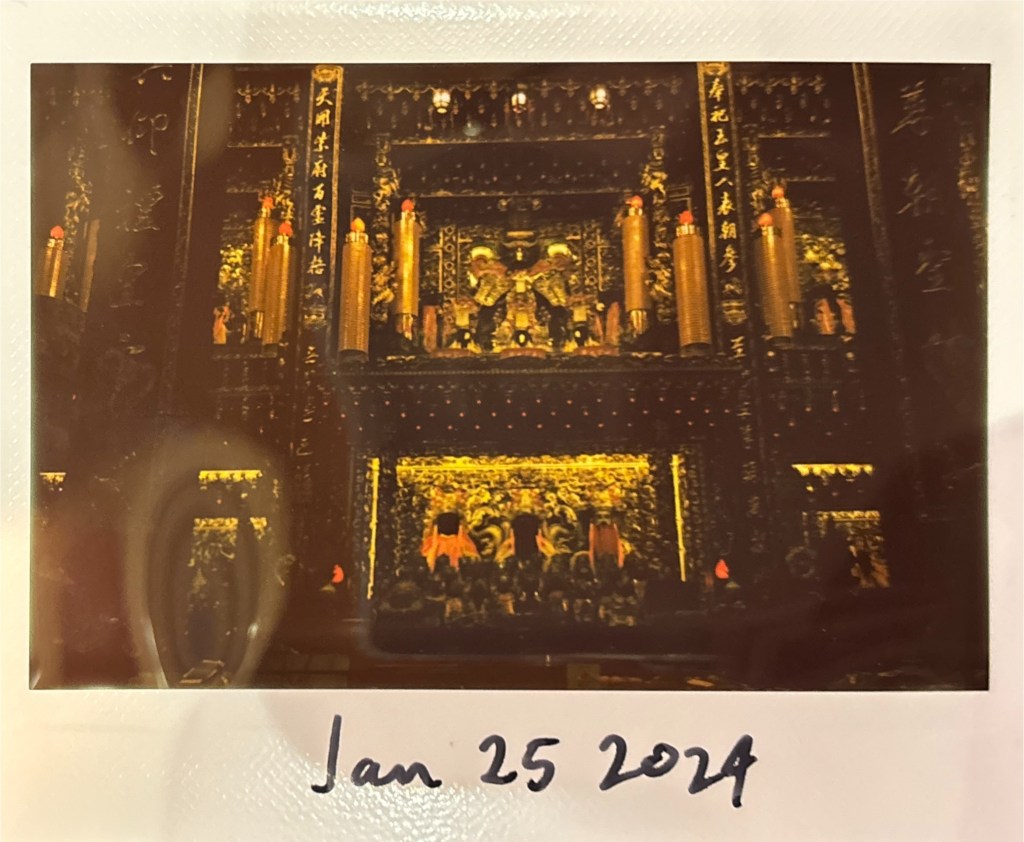 I took this one over at 奉天宮 Feng Tian Temple near my house. You can’t really turn off the flash on this type of camera, so there is a distinct terror when the whole temple is filled with blue light for a fraction of a second and everyone turns to see you carrying this inconspicuous box, now loudly whirring out the exposure.